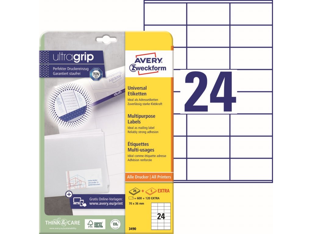 Samolepicí etikety | Avery Zweckform 3490 + online software pro tisk etiket + tiskové šablony ke stažení zdarma
