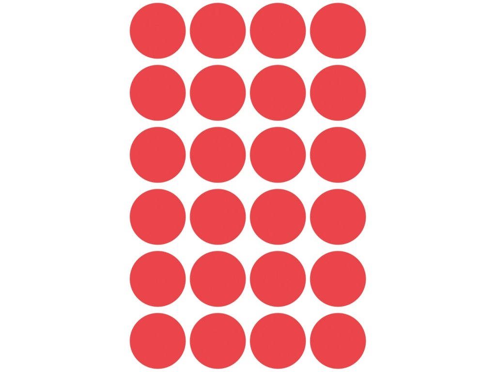 Kulaté značkovací etikety Avery Zweckform 3004 o průměru 18 mm jsou ideální pro rychlé a přehledné vizuální značení, plánování, třídění, organizaci a inventarizaci bez použití tiskárny. Tyto kulaté červené papírové etikety s permanentním lepidlem lze snadno popisovat tužkou, propiskou nebo fixem a skvěle se hodí pro výrobu, obchod, kancelář i domácnost. Spolehlivě drží na všech běžných typech povrchů. Samolepicí kolečka nabízíme v různých barvách a velikostech, takže si snadno vyberete variantu, která vám bude nejlépe vyhovovat.
