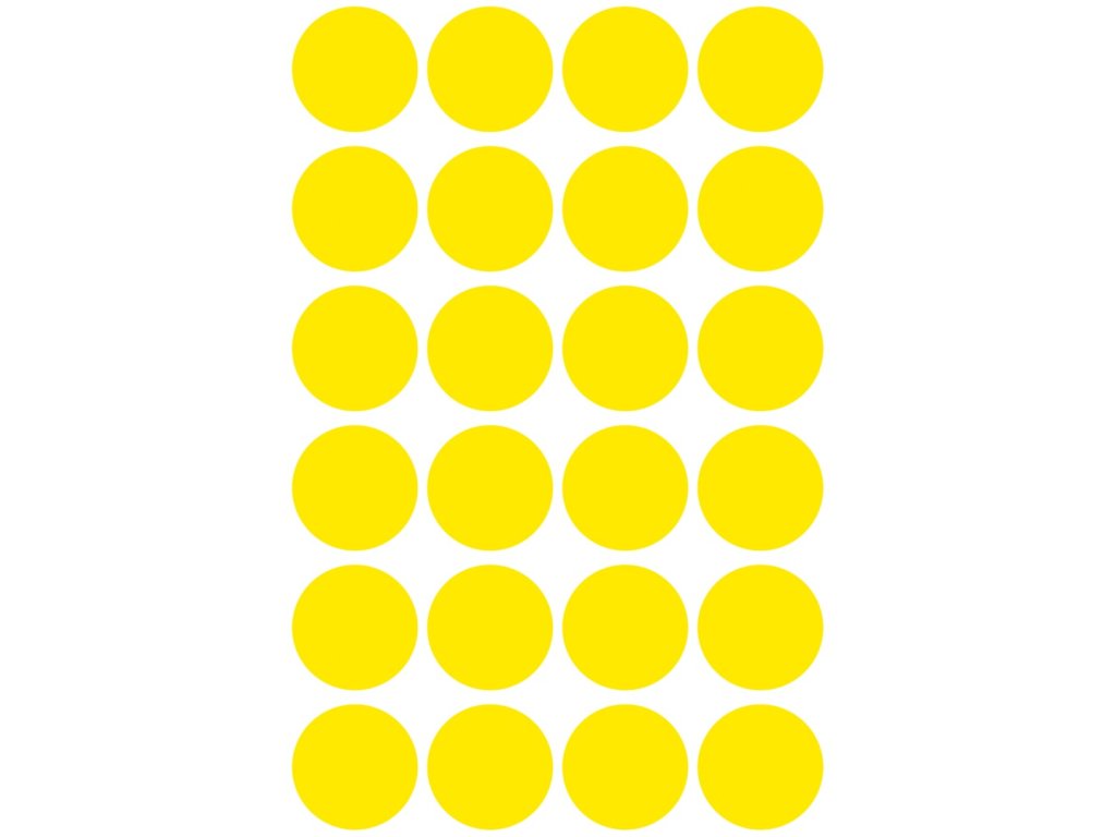 Balení obsahuje 96 ks žlutých samolepicích koleček.