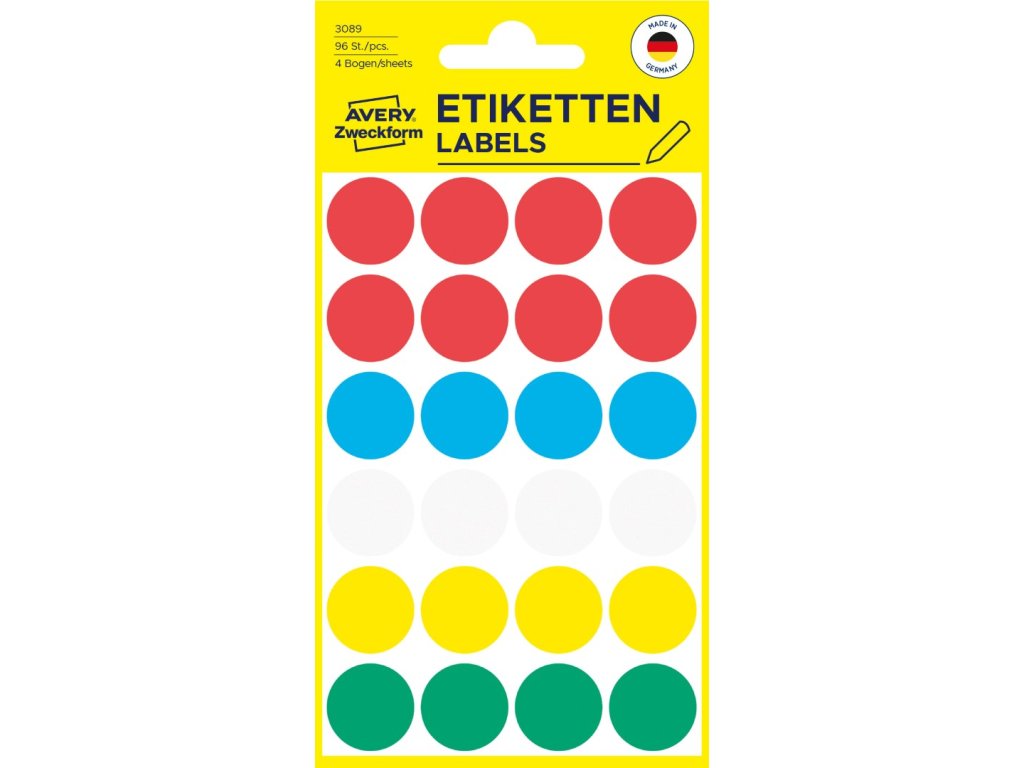 ✅ Objednejte si kulaté značkovací etikety Ø 18 Avery Zweckform 3089 u specialisty na etikety KALEDA, a.s. | etikety-stitky.cz