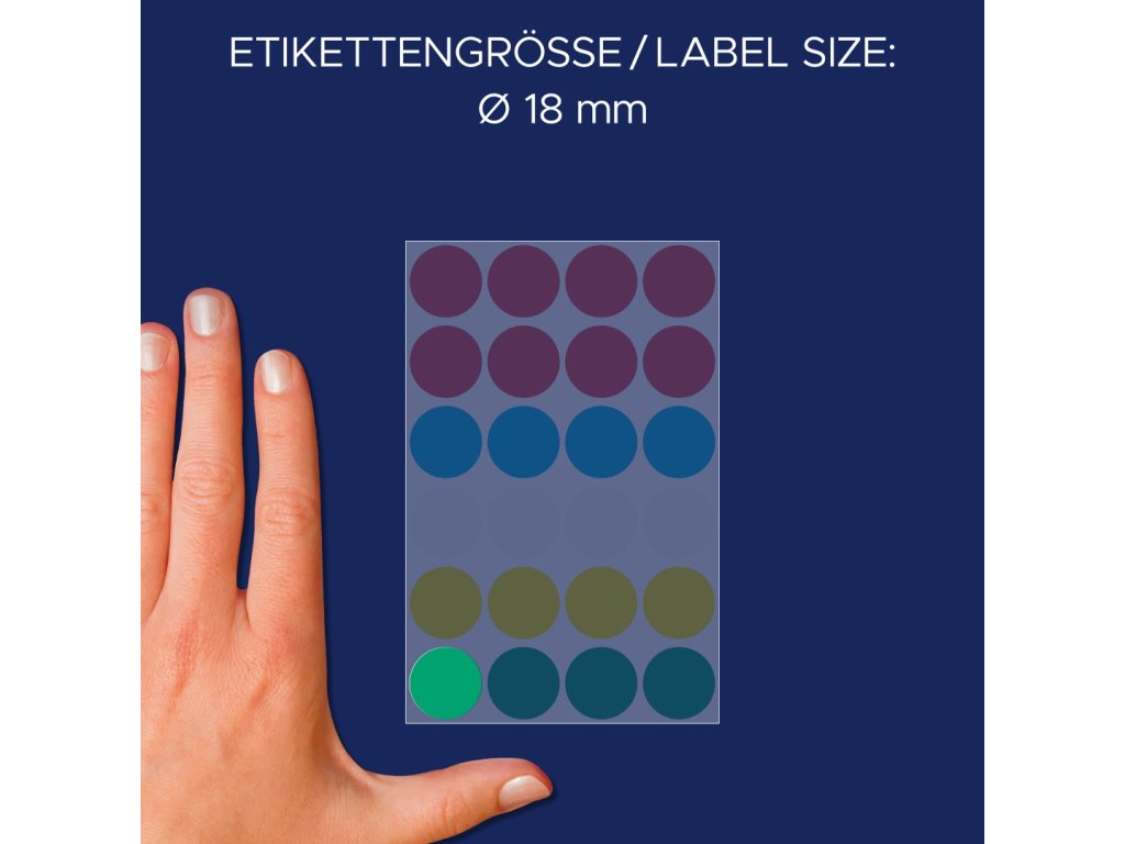 | Rozměr etikety: | ∅ 18 mm |