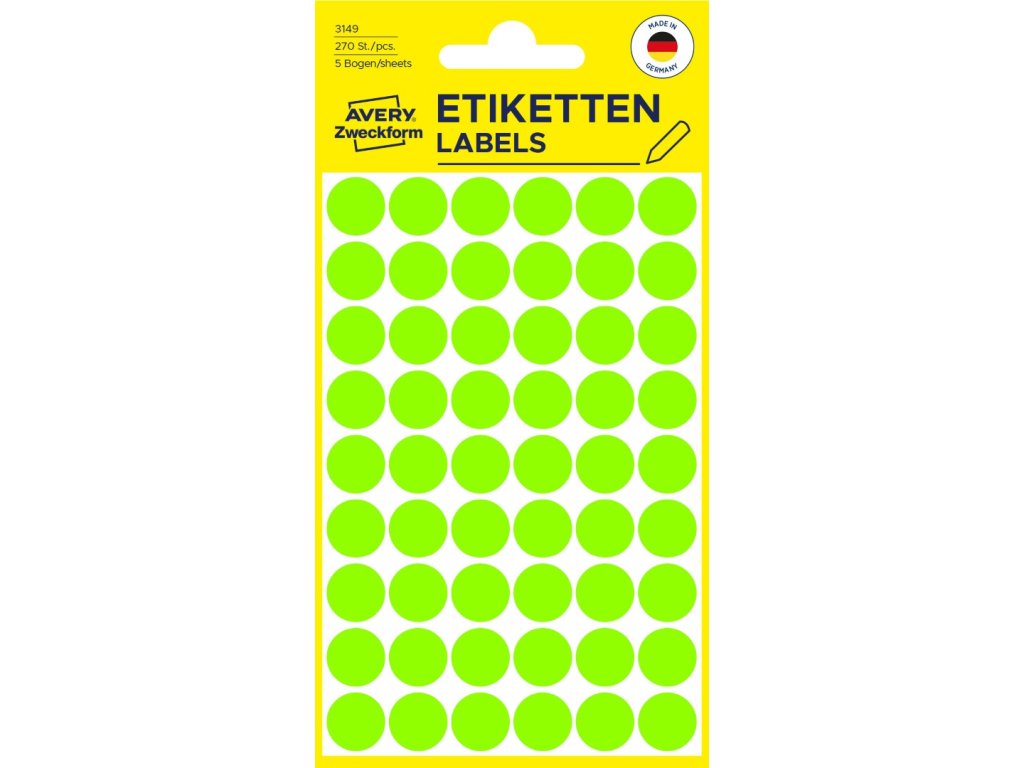✅ Objednejte si samolepicí kolečka Ø 12 Avery Zweckform 3149 u specialisty na etikety KALEDA, a.s. | etikety-stitky.cz