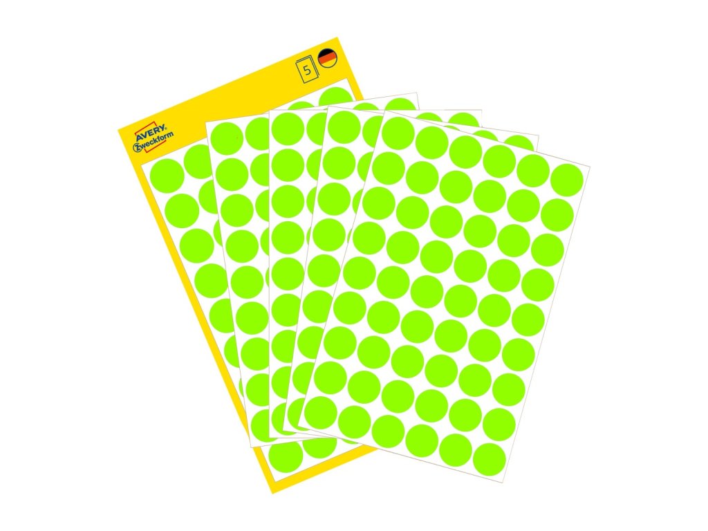 Balení obsahuje 270 ks neonově zelených samolepicích koleček.