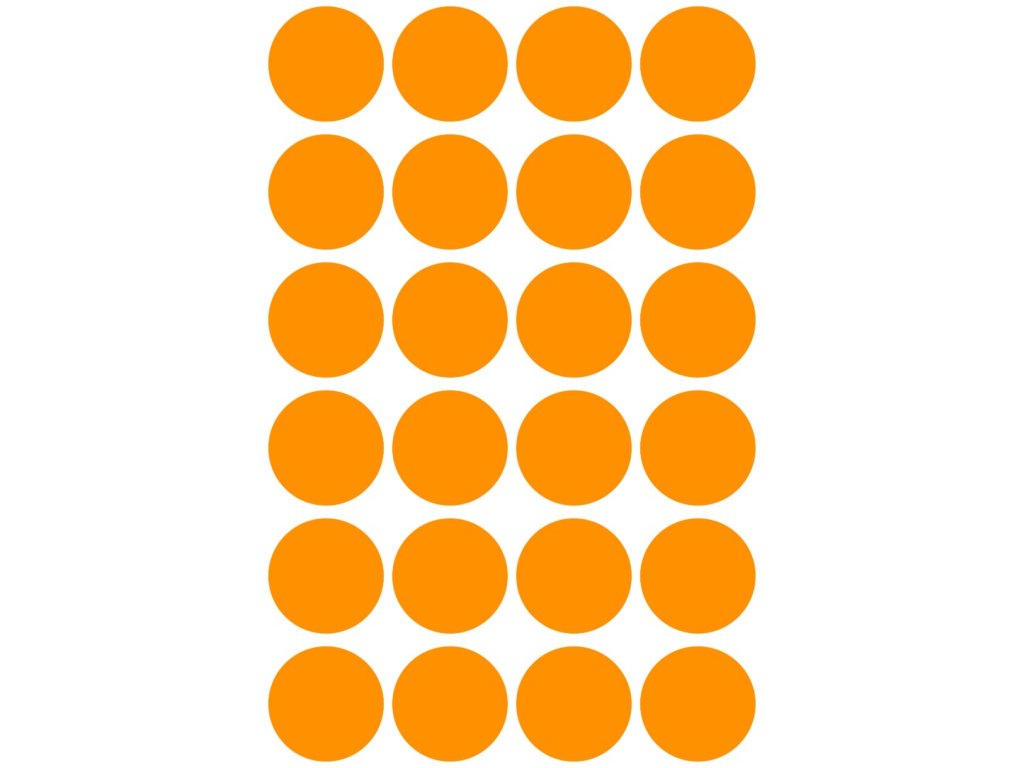 Kulaté značkovací etikety Avery Zweckform 3173 o průměru 18 mm jsou ideální pro rychlé a přehledné vizuální značení, plánování, třídění, organizaci a inventarizaci bez použití tiskárny. Tyto kulaté neonově oranžové papírové etikety s permanentním lepidlem lze snadno popisovat tužkou, propiskou nebo fixem a skvěle se hodí pro výrobu, obchod, kancelář i domácnost. Spolehlivě drží na všech běžných typech povrchů. Samolepicí kolečka nabízíme v různých barvách a velikostech, takže si snadno vyberete variantu, která vám bude nejlépe vyhovovat.