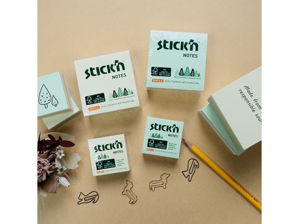 Společnost Hopax patří mezi přední světové výrobce samolepicích papírenských produktů. Nabízí široký sortiment bločků, kostek, záložek i bloků pro kancelář, školu i domácnost. Produkty Stick’n spojují inovativní technologie, kvalitní materiály a příznivou cenu. Samolepící bločky Stick'n by Hopax s označením FSC™ jsou ze 100% vyrobeny z papíru s certifikátem FSC™, tedy v souladu se zásadami udržitelného lesního hospodářství, používají lepidlo na vodní bázi a obal produktu je dále recyklovatelný.