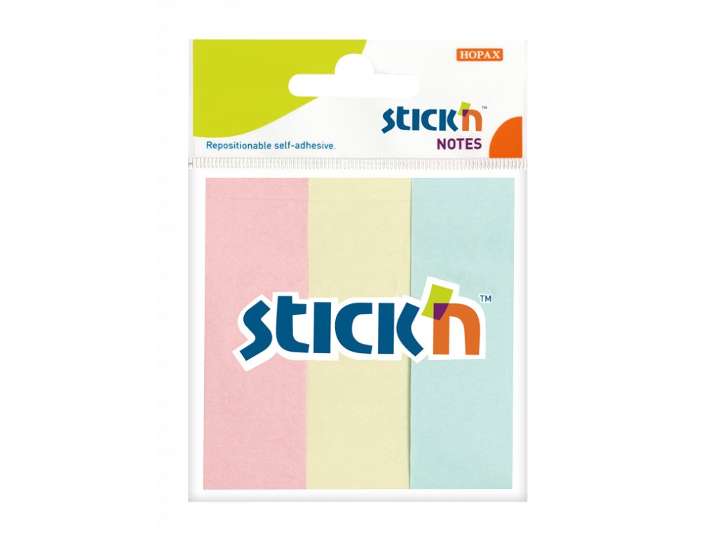 🗒️ Praktické samolepicí papírové záložky Stick’n by Hopax 21128 ve třech pastelových barvách (modrá, růžová, žlutá) o rozměru 76 x 25 mm jsou ideální na třídění, indexování a označování knih, dokumentů či složek. Lístky lze snadno nalepit i odlepit, přesto bezpečně drží a po sejmutí nezanechávají žádné stopy po lepidle. V naší nabídce najdete i další rozměry, barvy a provedení samolepicích záložek Stick’n by Hopax.