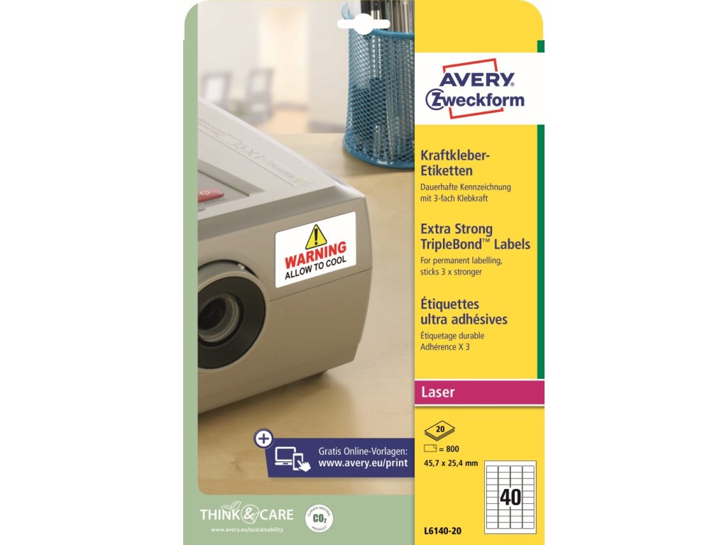 Silně lepivé PET etikety | Avery Zweckform L6140-20 + online software pro tisk etiket + tiskové šablony ke stažení zdarma