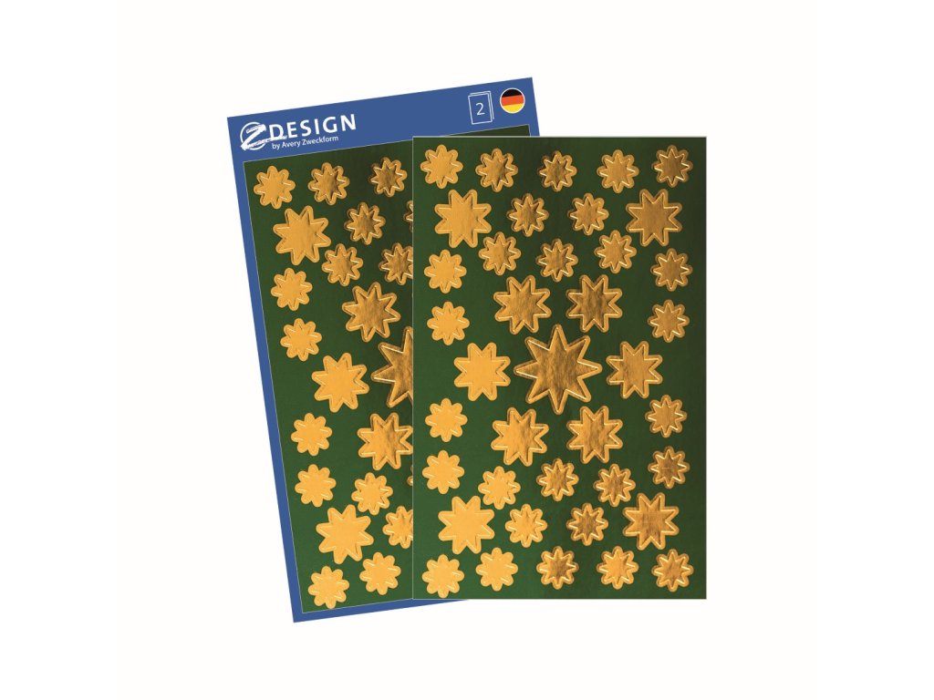 78 ks samolepek v balení, papírové, permanentní lepidlo, motiv hvězdičky. Balení obsahuje 2 stejné aršíky vyobrazených samolepek.