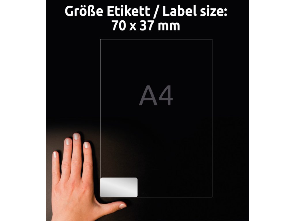 Velmi odolné samolepicí štítky Avery Zweckform L6133-20 o rozměru 70 x 37 mm jsou určeny do nejnáročnějších vnitřních i venkovních podmínek. Jsou ideální pro označování elektronických komponentů, zařízení, výrobků či majetku - jako typové, výrobní štítky nebo inventární štítky a pro dlouhodobé značení v interiéru i exteriéru, kde je vyžadována maximální trvanlivost a čitelnost. Díky vysoké a stálé lepivosti spolehlivě drží na většině běžných povrchů. Tyto matné stříbrné polyesterové etikety (PET) s permanentním lepidlem jsou omyvatelné, odolné vůči stříkající vodě, nečistotám, olejům, mastnotě, roztržení, stárnutí, UV záření a teplotám od -40 °C do +150 °C.