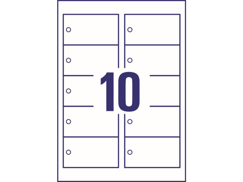 Balení obsahuje 100 ks visaček (10 ks na archu, 10 archů A4) pro laserové i inkoustové tiskárny.