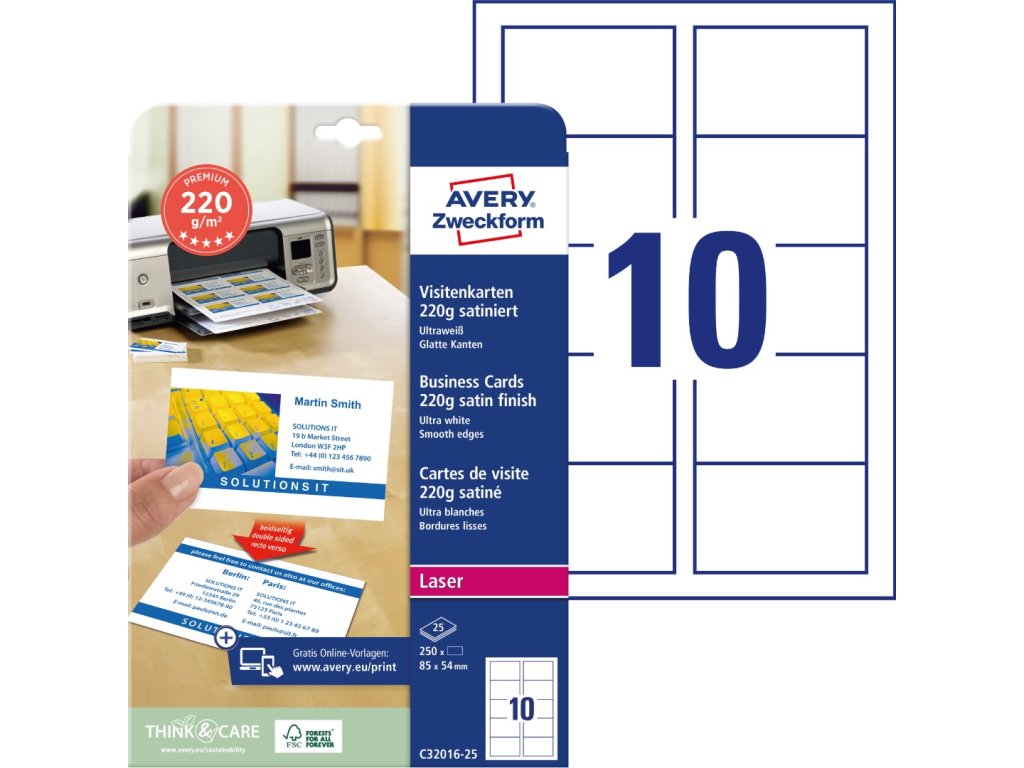 Vizitkový papír | Avery Zweckform C32016-25 + online software pro tisk vizitek + tisková šablona ke stažení zdarma